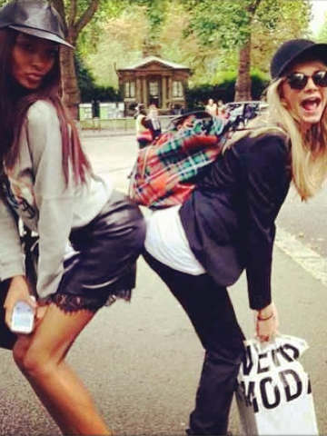 Cara Delevingne twerks with Jourdan Dunn Cara Delevingne and Jourdan Dunn tuck into fast food backstage at London Fashion Week Harry Styles has denied that he's dating Cara Delevingne Cara Delevingne has had a busy week Cara Delevingne is the latest celeb to take up twerking. The model joined pal Jourdan Dunn for a bit of bum-shaking yesterday and shared a cheeky snap of their antics on Instagram. ‘I love my booty bumping partner in crime @officialjdunn,' Cara, 21, posted. In the funny picture Cara pulls a face while wiggling her bottom next to a pouting Jourdan, 23. The girls have both made catwalk appearances during London Fashion Week and they've clearly worked up an appetite. Yesterday Cara shared a snap of them holding McDonald's takeaway bags between their teeth backstage at a show.